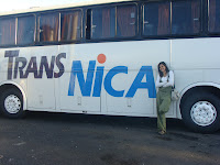 Levantei as 3:00 hs, um friozinho suportável, tudo pronto, mochila fechada, apenas com a roupa que colocaria do lado de fora da mochila... Levantei igual um gato, com tênis na mão e a mochila na outra e uma bolsa a tiracolo, bem devagar sai do quarto, quando vi que havia conseguido fazer tudo sem barulho, fecho a porta e dá aquele rangido, até eu levo um susto. Em meio a escuridão caminho pelo corredor tateando até chegar a saída, cheguei na recepção, a moça enrolada no cobertor levanta e chama um táxi pra mim, conforme o combinado. Pego então o ônibus as 4:30hs com sentindo a Nicarágua. Vale lembrar que só vi rodoviária no Panamá e México, nos outros cada companhia de ônibus tinha seu terminal, se eu peguei o TRANSNICA, então o taxista já saberia o endereço, fiquei numa